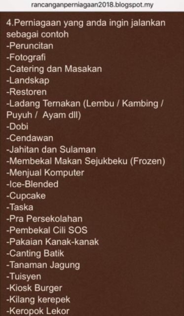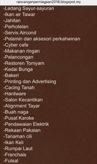 20 kertas kerja rancangan perniagaan atau business plan yang berjaya mendapatkan pinjaman dari institusi-institusi kewangan di Malaysia terutamanya SME Bank Bank Pembangunan PUNB MARA. Sekiranya kedai barbershop menyediakan perkhidmatannya semasa pulang ke rumah maka dalam proses merancang rancangan perniagaan anda perlu memiliki kereta anda. Jenis Perniagaan Jenis perniagaan yang diceburi adalah perniagaan dobi.