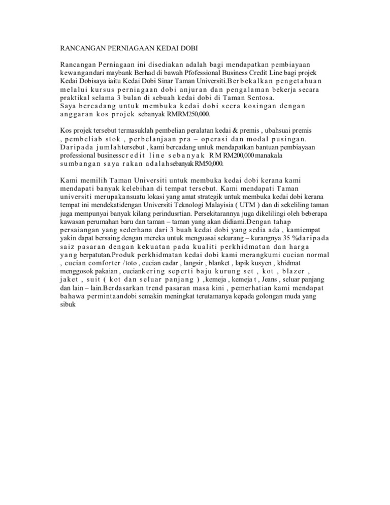 Selain itu kami juga menawarkan nasihat dan kursus dobi yang mengandungi beberapa jenis pakej dobi yang berkesan kepada sesiapa sahaja yang berminat untuk memulakan perniagaan dobi. May 26 2012 RANCANGAN PERNIAGAAN - PERKHIDMATAN DOBI Saturday 26 May 2012. Mesin basuh yang digunakan di rumah tidak sama dengan mesin basuh di kedai dobi.